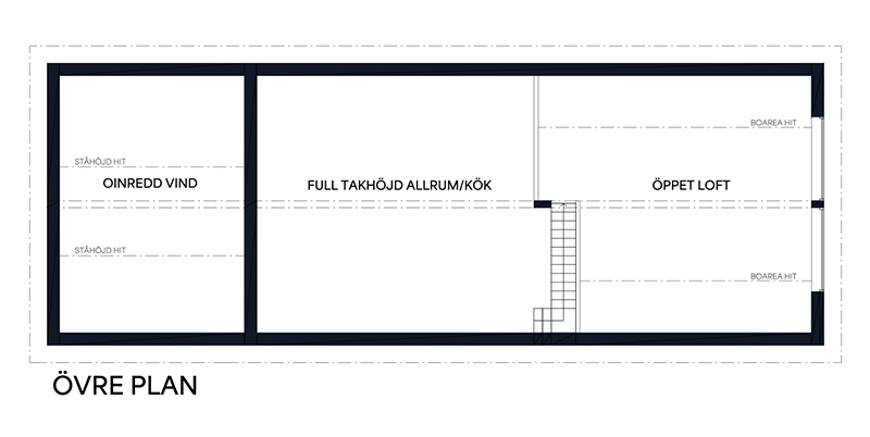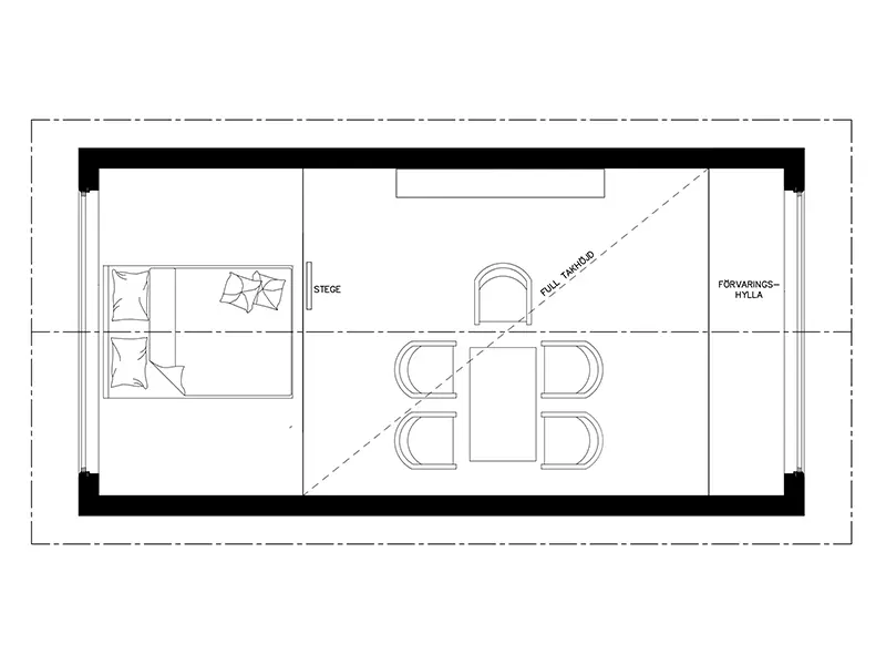 - Här får du ett smart planerat boende med kök, badrum med dusch och toalett, sovrum på markplan samt både sovloft och extra förvaringsloft.