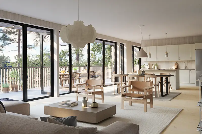 - De stora fönsterpartierna gör att ljuset flödar in och skapar en härlig rymd trots den kompakta storleken.